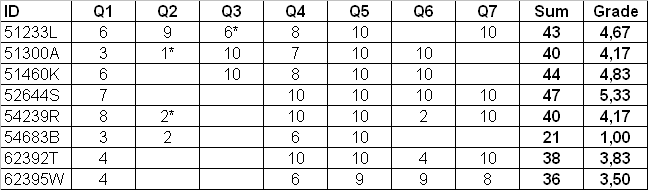 EXAM (14.03.2005) RESULTS